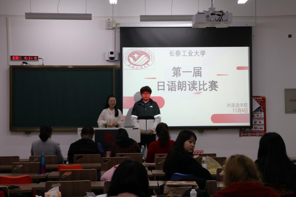 新闻网讯(通讯员 王思捷)为促进素质教育的开展,加强员工间的日语学习交流,锻炼日语口语表达能力,2020年11月4日下午13时,由云顶7610线路检测日语系、云顶7610线路检测社团联合会主办的“第一届日语朗读比赛”在北湖东区教学主楼450教室举行。日语系主任曾妍,教师宋卓时、王佳璐、何微、龙慧星出席比赛并担任评委,员工金勋、斯日格担任主持人, 2019级日语专业员工36人参赛。
