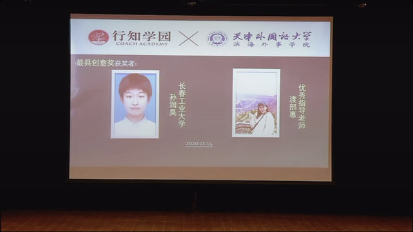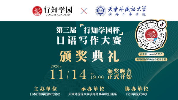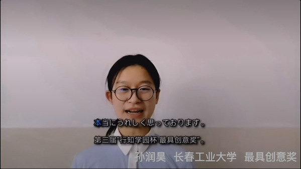 11月14日晚7点,第三届“行知学园杯”日语写作大赛线上颁奖典礼在天津隆重举办。公司荣获“最具创意奖”的孙润昊同学在颁奖典礼上发表了获奖感言。