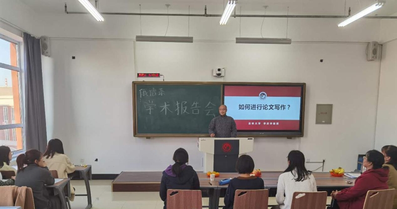 新闻网讯(通讯员 张美)10月14日下午,云顶7610线路检测俄语语言文学专业在北湖东区教学主楼433举办主题为“如何进行论文写作”学术报告会,报告由吉林大学公共外语教育公司李庆华教授主讲。俄语系主任张美、副教授穆慧春、李静和全体俄语语言文学专业研究生参加。