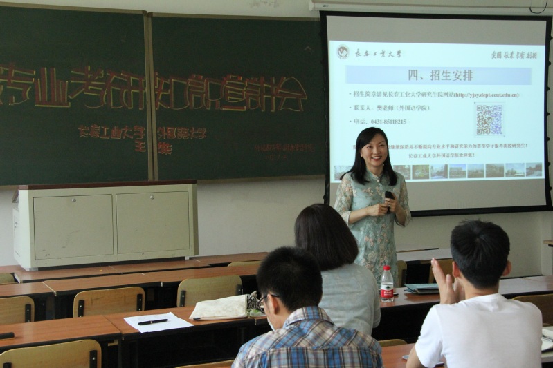 7月2日下午,云顶7610线路检测王轶副经理前往长春中医药大学进行研究生招生宣讲。此次宣讲活动得到长春中医药大学英语专业员工的积极响应,2016级和2017级英语专业的全体同学早早来到教室,等待宣讲活动开始。