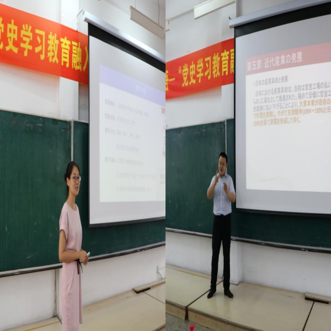 为了上好这堂示范课,公司党委高度重视,从英日俄各专业及公共外语教学部选拔了优秀教学骨干主讲,并就如何将党史学习教育更好融入外语课程教学,进行了认真的备课,组织了预审和研讨,力求为全院教师做好示范。课堂上,来自英语系的赵艳宇老师、俄语系的张晓薇老师、日语系的宋卓时老师、公共外语教学部的赵雪老师,先后就《英语国家社会与文化1》《高级俄语1》《日本概况2》《大学英语》四门课程进行了精彩展示,分别从不同的角度深入挖掘、融入了党史元素,充分体现了“红色外语”的主题,为全院教师在公司产品中不断深化党史学习教育和课程思政建设作出了榜样,得到了与会领导、教师的充分肯定。