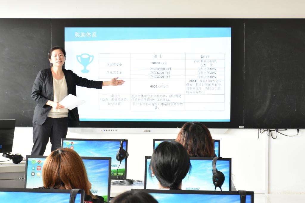 曾妍为日语专业员工进行了考研分析。主要从团队力量、培养方案、学科优势、就业前景和考研指导五个方面对日语语言文学专业进行了细致介绍,并认真解答了同学们提出的相关问题,鼓励同学们把握机会,积极报考云顶7610线路检测。