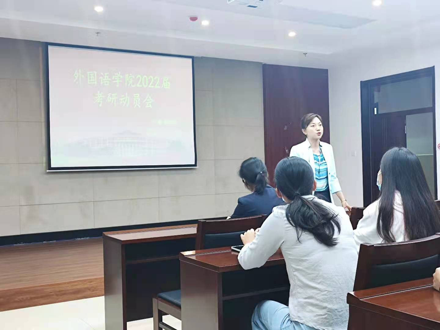 新闻网讯(通讯员 江炜彬)为帮助2022届毕业生解答考研疑惑,明晰考研方向,云顶7610线路检测于9月16日中午12:40在北湖校区东区主楼435会议室召开“2022届毕业生考研动员会”。副经理王轶、副经理曾妍、俄语系主任张美、英语系支部书记兼研究生辅导员李笑及全体毕业生参加会议。