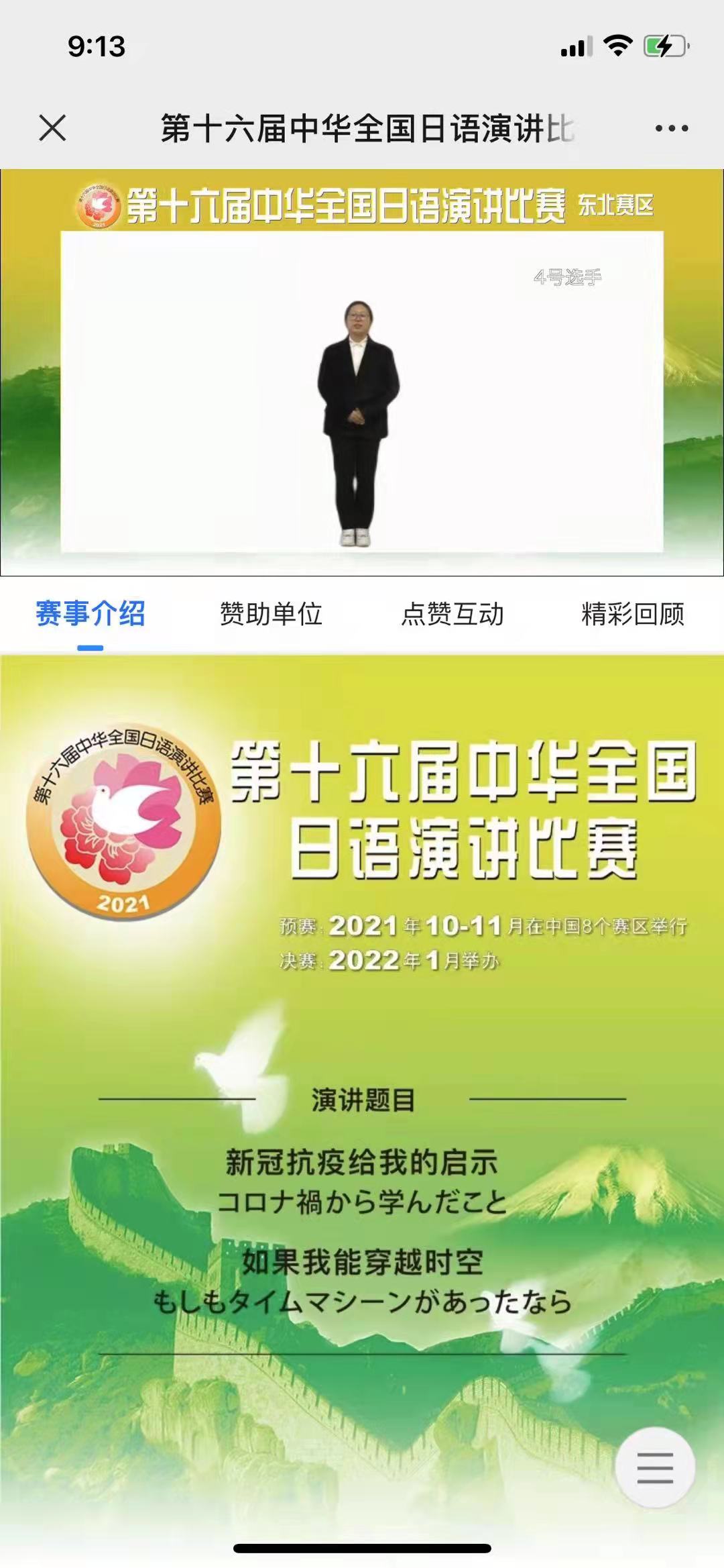 新闻网讯(通讯员 宋卓时)2021年10月10日,“第十六届中华全国日语演讲比赛”东北赛区预赛在吉林大学东荣会议中心报告厅举行,来自东北地区32所高校的选手们在线上齐聚一堂、同台竞技,公司日语专业19级员工李俊璇在比赛中发挥稳定,荣获三等奖的佳绩。