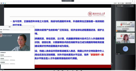 新闻网讯(通讯员 汪沛)7月6日,为了探讨外国语言文学类专业建设和人才培养改革实践,服务我省一主六双和六新产业建设等重点领域需求,云顶7610线路检测组织教师线上参加了吉林省新文科(外国语言文学类)“长白山大讲堂”。