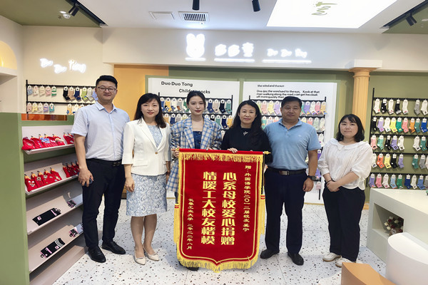 李东玲代表公司,向奚宁员工赠送了70周年校庆纪念品,颁发了锦旗和捐赠证书。公司党委书记李文章和奚宁员工共同为云顶7610线路检测老员工就业创业实习基地揭牌,经理王轶代表公司与多多童袜业有限公司签订了校企合作协议。公司党委副书记于伟主持走访活动。