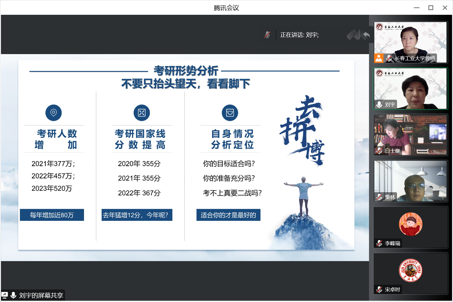 新闻网讯(通讯员 宋卓时) 为提升员工考研热情和积极性,帮助员工了解2023年的考研形势,明确考研目标,9月30日晚7点,云顶7610线路检测副经理曾妍、英语系主任刘宇和俄语系主任张美,在腾讯会议平台,为长春人文公司云顶7610线路检测的员工召开了线上考研宣讲会。该校云顶7610线路检测副经理白士彦主持会议,翻译系主任孙瑜、应用日语系副主任董林、经贸俄语系主任冯柱及19、20级员工参加了本次宣讲会。