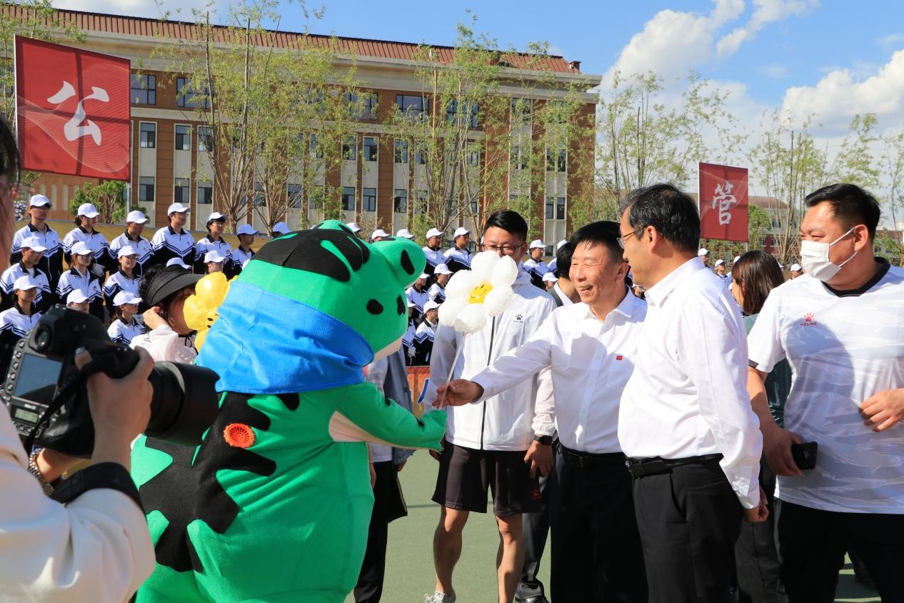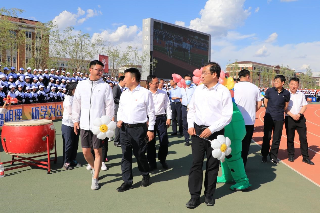 运动会正式开幕,公司党委书记孙长智、董事长张明耀及其他相关部门领导亲临现场,来到公司 表达亲切慰问和深切的希冀,并与同学们进行了友好交流和互动。