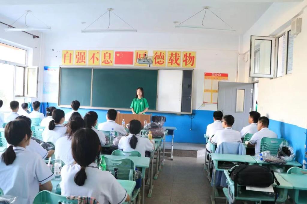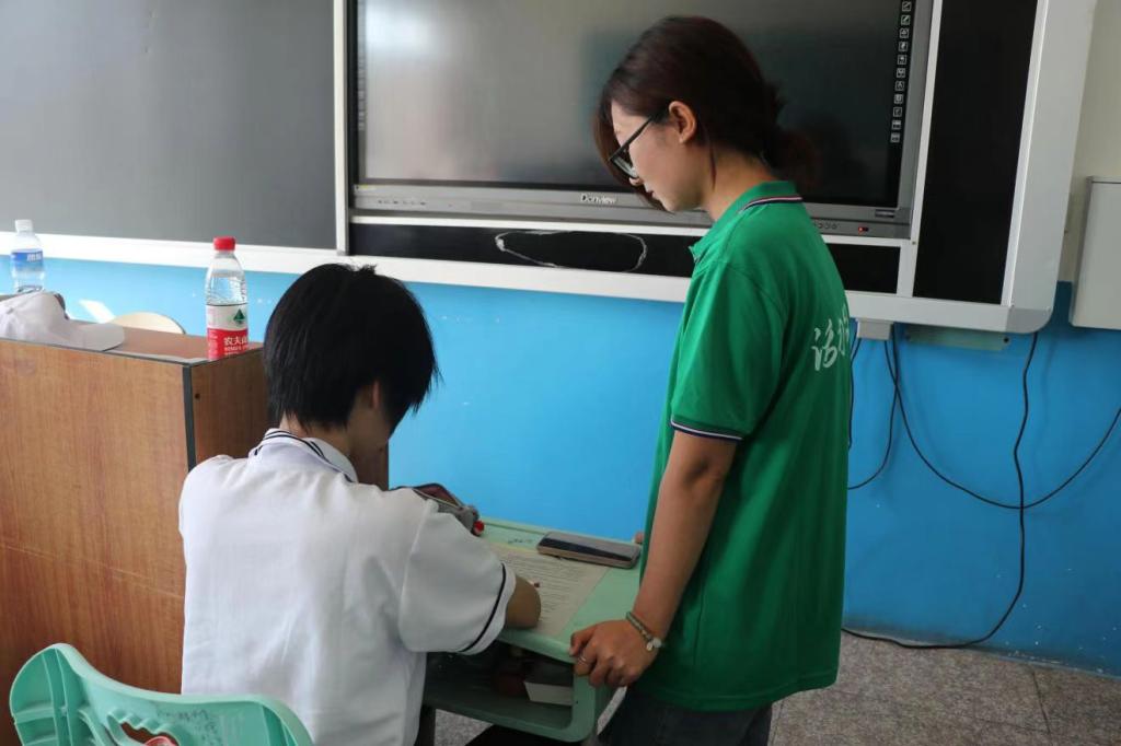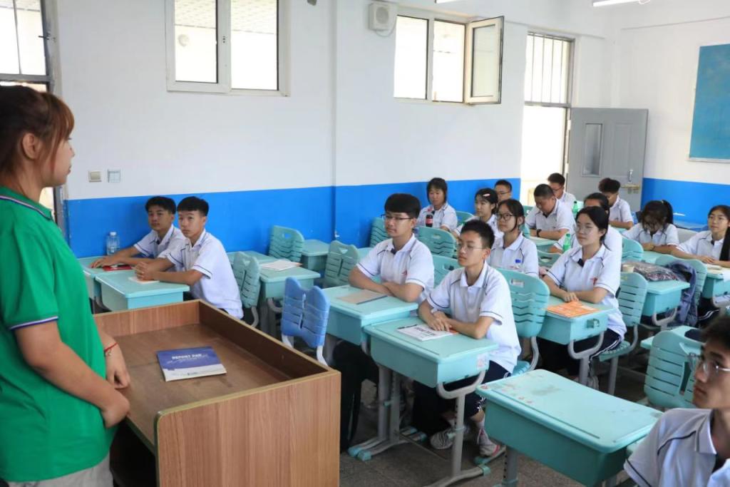 揭牌仪式结束,志愿者们立即投入到志愿服务之中。团队成员以兴趣教育、科学调研为主要目标,深入参与四中学子的学习与生活。本次实践主要分为两部分:第一部分为英语特色课堂。团队成员通过阅读解题技巧、作文写作技巧等教学特色活动,改变员工们对传统英语课堂的刻板印象,增加学习兴趣,努力提高英语成绩。第二部分是丰富九台四中学子的课余生活。每名志愿者作为副班主任,参与到军训的日常管理,教唱军歌、文艺表演等活动中。通过接触,更好的发挥朋辈示范引领作用,鼓励同学们克服苦难、迎难而上,努力学习。