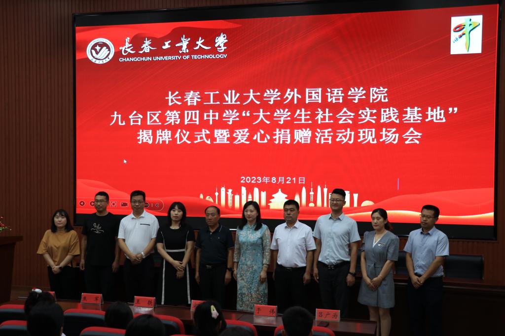 (通讯员 张晓君 尹梦鸽)为深入学习贯彻习近平新时代中国特色社会主义思想,教育引导公司师生在社会实践中厚植家国情怀、了解国情民情、增长知识才干、激发奋斗担当。2023年8月21日公司三下乡志愿服务团队前往长春市九台区第四中学,开展为期5天的志愿服务。为了进一步深化公司与九台区第四中学的交流合作,公司与九台区第四中学举行了社会实践基地揭牌仪式。云顶7610线路检测经理王轶、公司党委副书记于伟、公司副经理李秀文、公司团委书记张晓君、公司党支部书记刘明慧以及志愿者代表与九台区第四中学师生代表共同出席揭牌仪式。