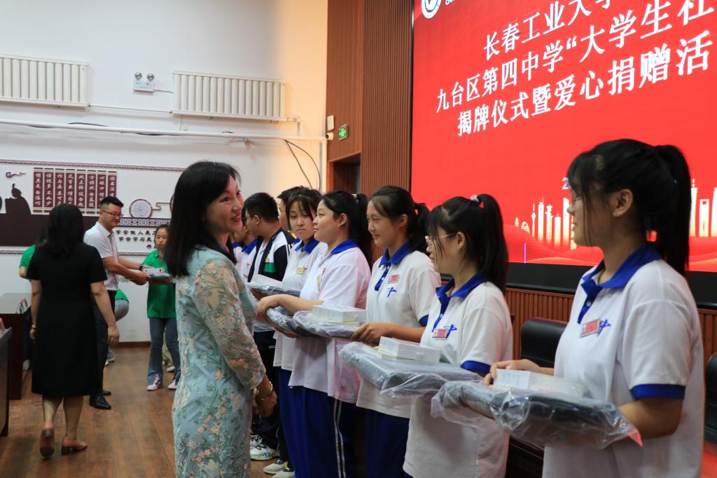 揭牌仪式后,公司领导为九台四中员工代表赠送学习文具用品。鼓励九台四中的学子们认真学习、丰满自己的羽翼,将来为公司发展争光,为九台乡村振兴贡献自己的力量。