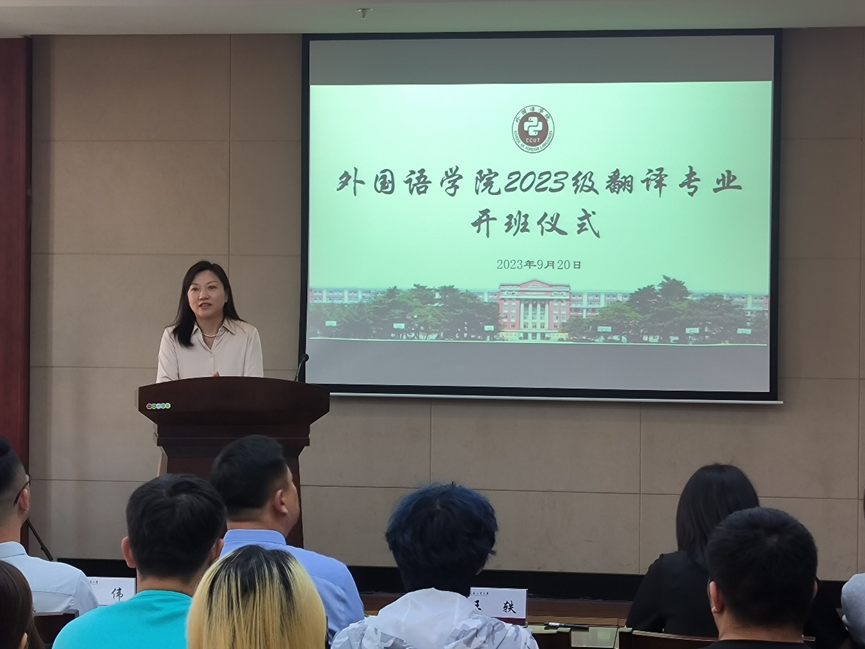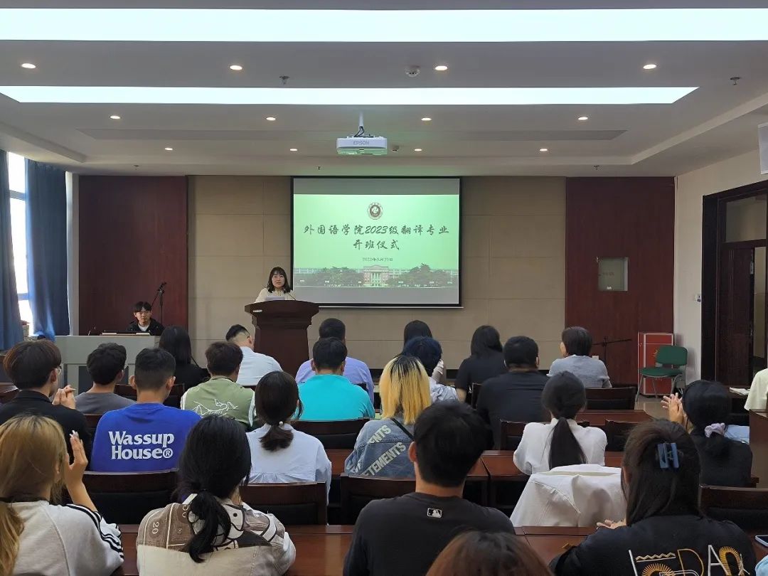 本次2023级新生入学教育的翻译专业介绍会暨开班仪式,为新生增强专业认知、培养专业兴趣和强化专业意识打下了良好基础。希望通过此次入学教育,同学们能明确自身专业的定位,坚定目标与理想,在未来四年的学习中,定能不负时代,不负青春,奋斗出属于自己的精彩,写下绚丽的人生华章!