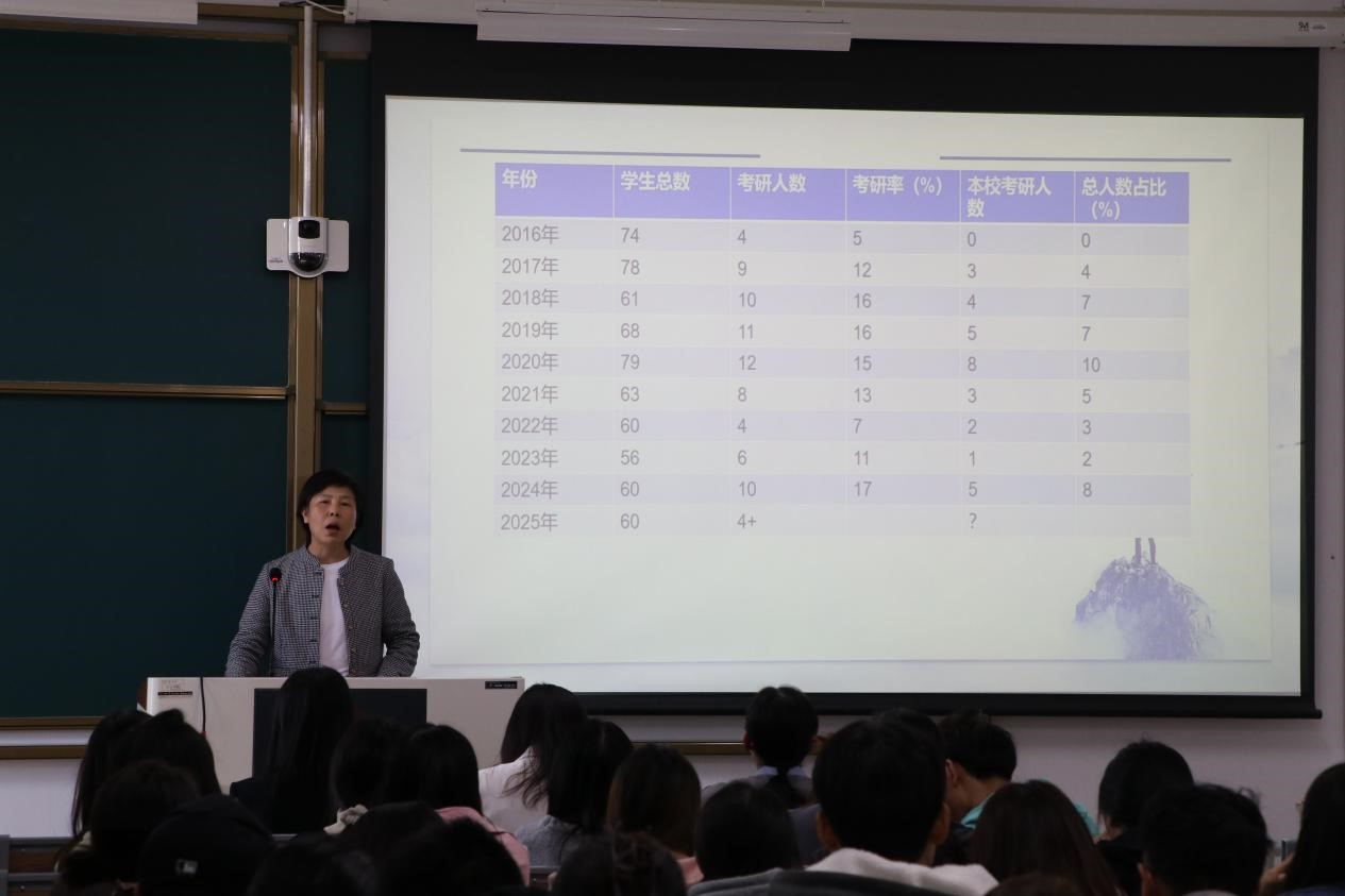 会上,英语系主任刘宇结合学科特点,向同学们介绍了公司英语语言文学、外国语言学及应用语言学专业的团队力量、开设课程、社会实践等具体情况,并结合近几年的考研人数、录取分数线等做了考研形势分析,鼓励同学们找到适合自己的目标,保持良好的心态,进行科学的报考。