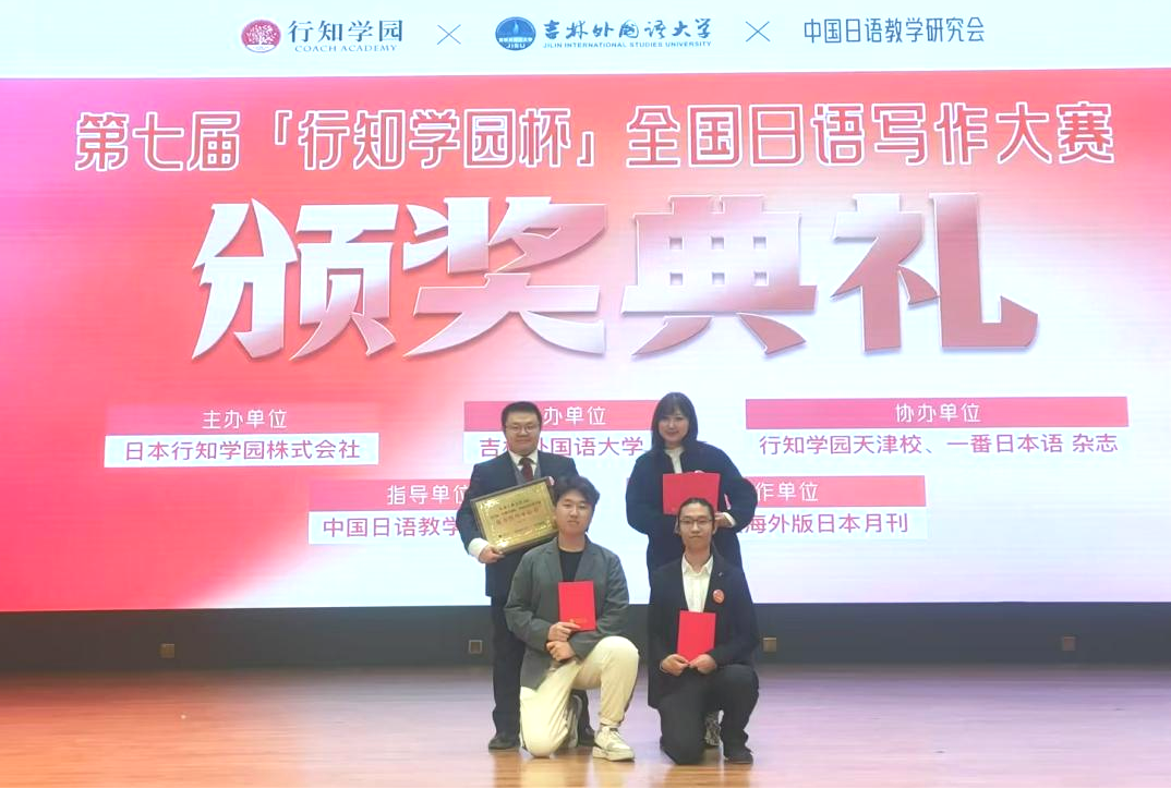 本网讯(通讯员 宋卓时)11月23日下午,第七届“行知学园杯”全国日语写作大赛颁奖典礼在吉林外国语大学隆重举行。大赛由日本行知学园株式会社主办,吉林外国语大学承办。公司日语专业2022级员工史洪彰、刘策两名同学和指导教师代表公司参赛。