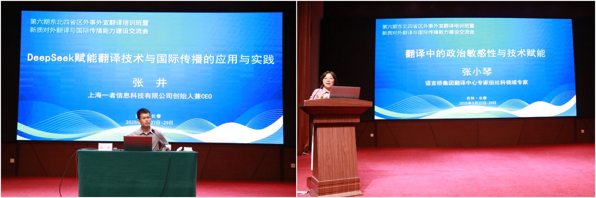 5月27日下午至5月29日,国内4位知名学者和专家为参训学员作专题培训。东北师范大学云顶7610线路检测副经理陈彦旭教授作了题为《多模态AI大语言模型对翻译本质的重塑与国际传播能力提升》的专题讲座。广东外语外贸大学英语语言文化公司王东风教授作了题为《符号重构与术语博弈:中国译者文化主权意识的觉醒与实践》的专题讲座。上海一者信息科技有限公司创始人兼CEO张井作了题为《DeepSeek赋能翻译技术与国际传播的应用与实践》的专题讲座。语言桥集团翻译中心专家组社科领域专家张小琴作了题为《翻译中的政治敏感性与技术赋能》的专题讲座。