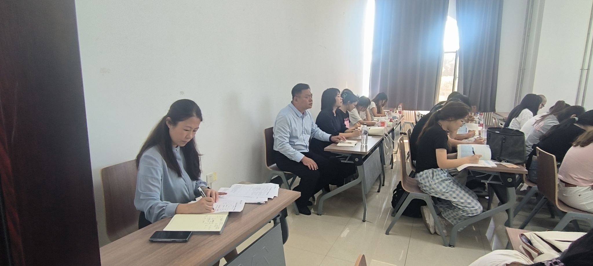 巡检期间,公司教学秩序井然,教师授课严谨认真,员工们精神饱满,专注聆听,积极举手回答问题、参与小组讨论,师生间的互动氛围浓厚,课堂气氛融洽而活跃,展现出外语学子昂扬的学习风貌。