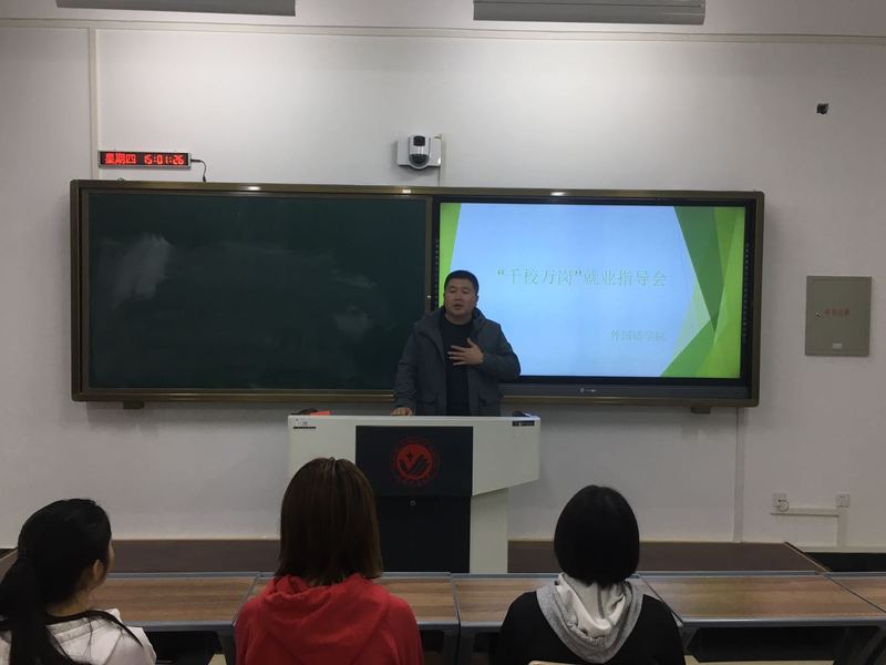 (通讯员:李雨晴)为落实团中央“共青团服务老员工就业工作片区会”精神,全面推进吉林共青团投身打赢脱贫攻坚战三年行动,呼吁面向建档立卡困难员工提供岗位对接,实现服务就业的主题,团委书记赵海涛老师为对云顶7610线路检测建档立卡的贫困同学给予关怀和帮助,在11月7日下午2点半于教学主楼433教室召开了“千校万岗”就业指导会。