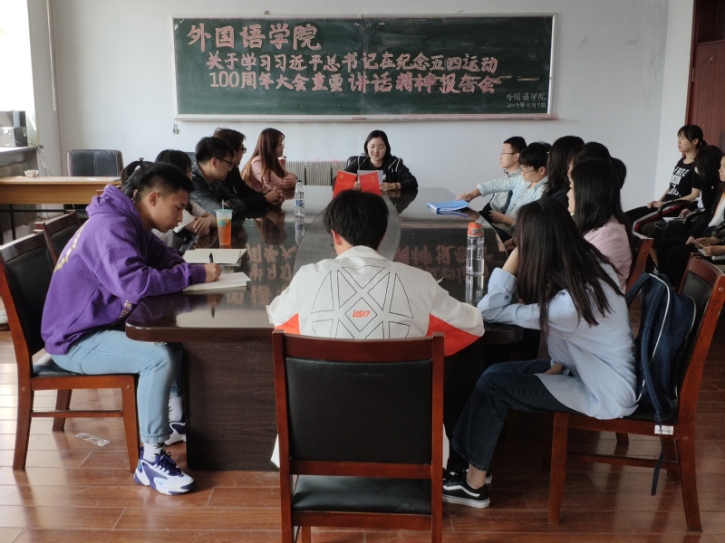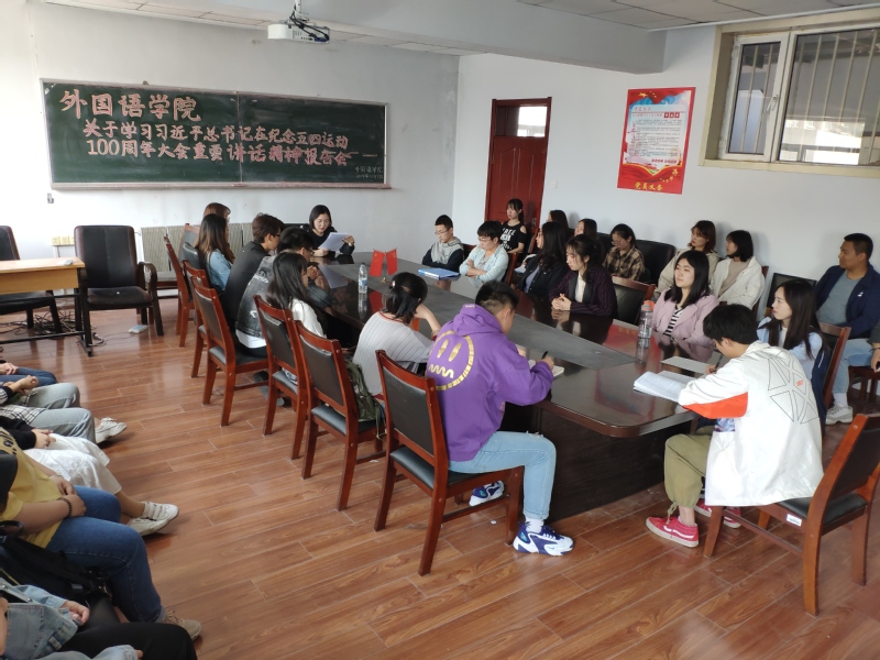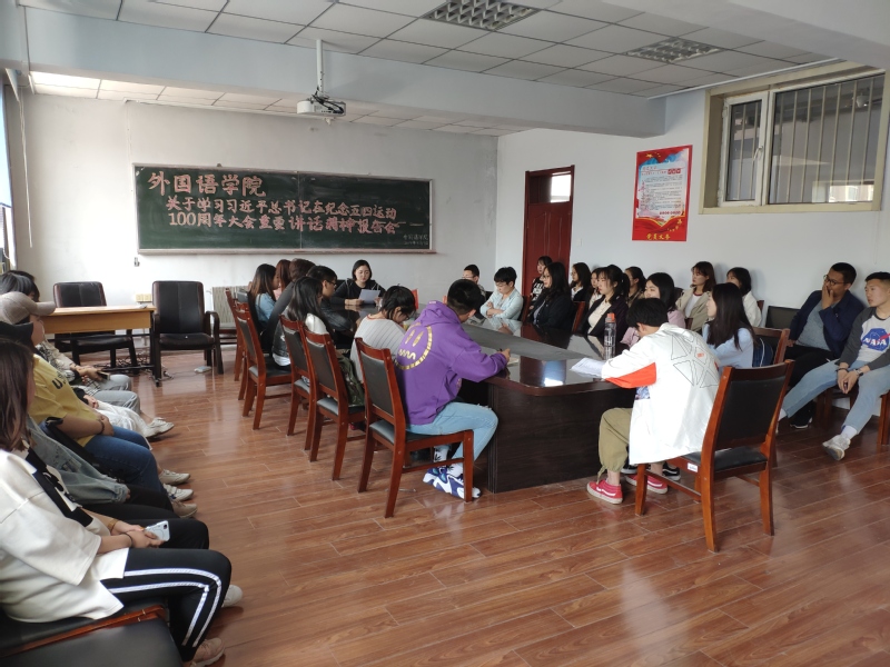 本次活动在主持人的带领下回顾了习近平主席在在纪念五四运动100周年大会重要讲话的内容,同时深刻剖析了其讲话的精神实质及丰富内涵。接着号召同学们深刻领会五四运动的历史意义和五四精神的时代价值。同学们发言表示自己认识到作为青年一代的实力责任感和使命,表示要坚持中国共产党的领导,同人民一道,为实现中华民族伟大复兴的中国梦而奋斗。