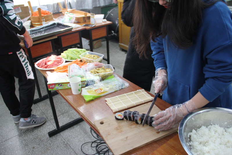 最后,同学们互相品尝并点评了各组的寿司,在淡淡的紫菜与米饭的清香中大会落下了帷幕。
