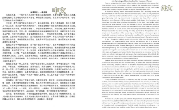 此次双语主题征文活动,大家用手中的笔和铿锵有力的声音记录了这场抗议阻击战中值得铭记的时刻,一起为这场生命健康保卫战助力。通过优美的双语表达,展现了公司员工们的积极风貌和语言风采,推动了公司疫情期间的文化建设。
