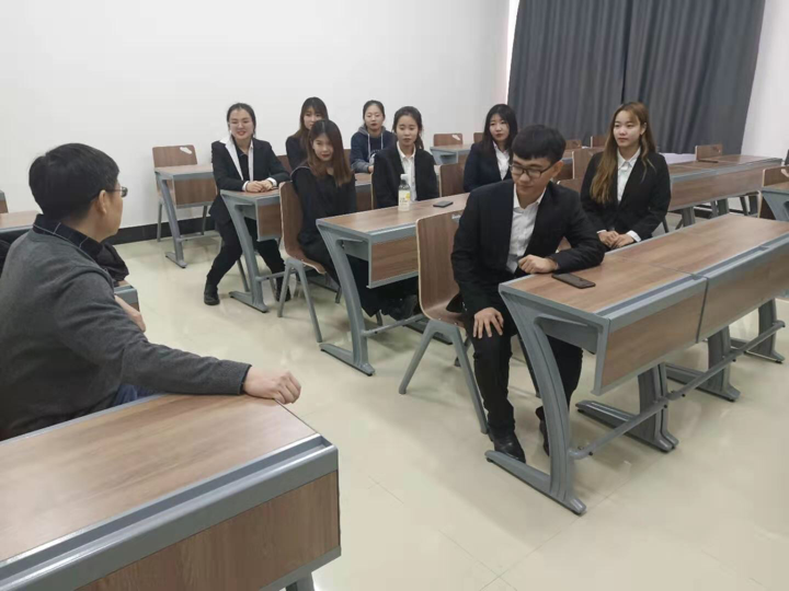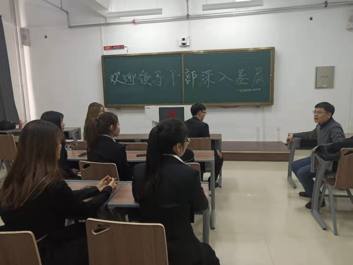 181005班班长王玉同学对周部长进行了班级总结汇报。周部长肯定了同学们以往的优秀表现并希望同学们继往开来,不断进取。并引用习近平总书记在北大建校100周年讲话中提到的“每一个青年都应成为社会主义的接班人与建设者,不辱时代使命”,以此激发同学们斗志,鼓励同学继续奋斗。
